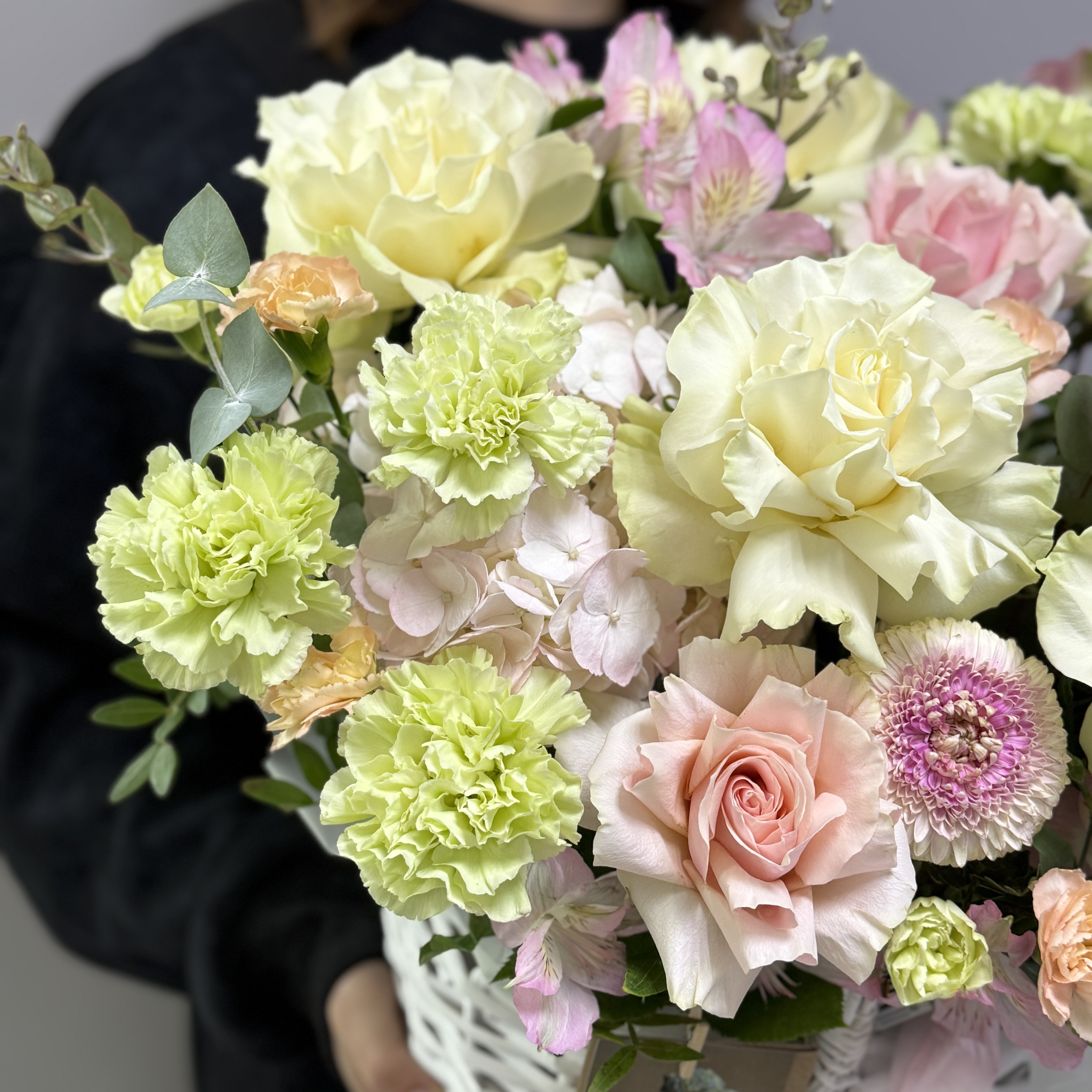 Роза Эквадор, Гвоздика, Гвоздика кустовая, Эвкалипт, Гортензия, Альстромерия, Гербера