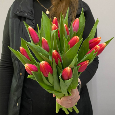 —Букет из 17 красно-белых тюльпанов